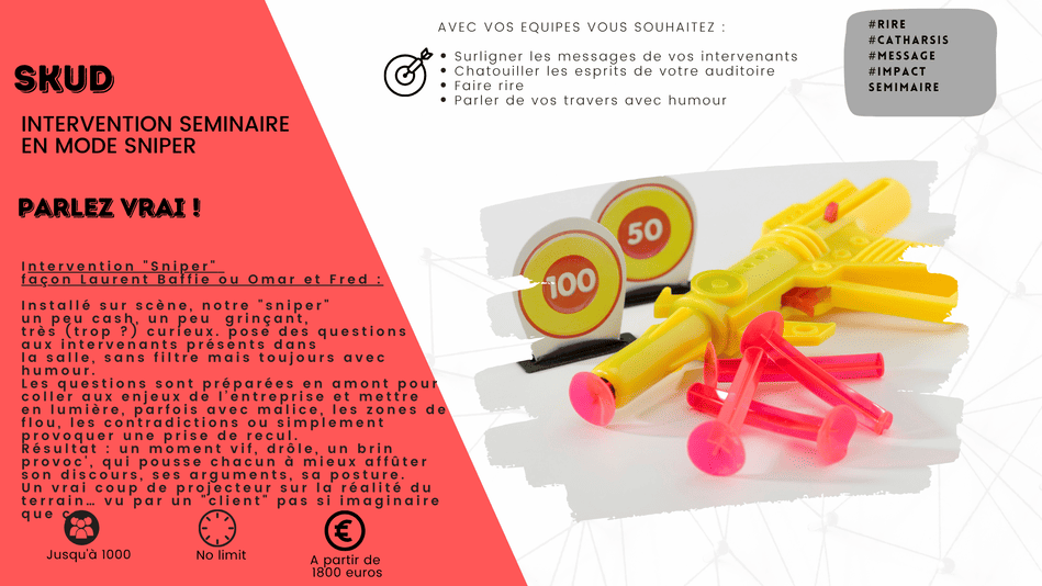 Intervention séminaire en mode sniper façon Laurent Baffie ou Omar et Fred